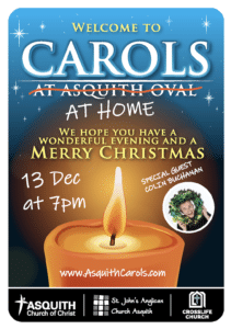 Asquith Church of Christ, together with two other local churches, is running its annual community carols event online this Sunday (13 December) for the first time in its 11-year history. Last year the carols attracted about 5000 people.
